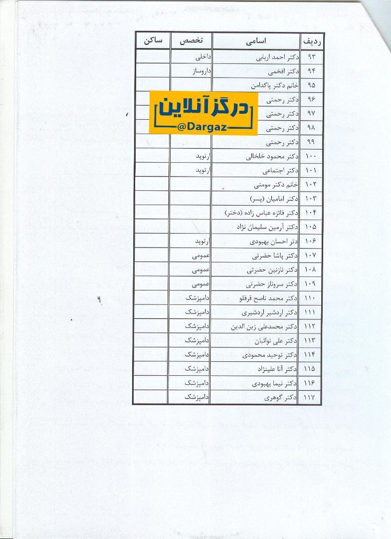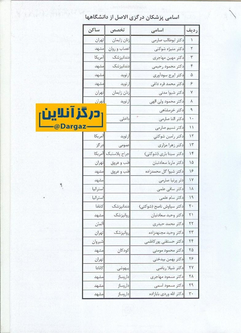 ÙØ§Ø±Øº Ø§Ù„ØªØØµÛŒÙ„ان درگزی در این رشته Ùˆ پزشکانی Ú©Ù‡ در شهرستان در ØØ§Ù„ ÙØ¹Ø§Ù„یت هستند